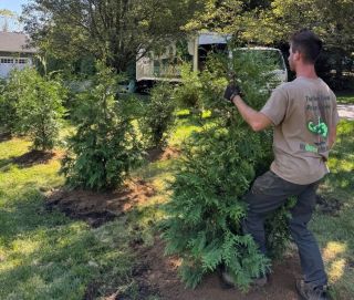 We were back in Bethlehem this week planting another 30 Green Giants for a repeat customer - one of the best parts of this job. Earlier this spring, we planted the first two sections along his property line. When we pulled up this time, we couldn’t believe how much those trees had grown: three to four feet in just a few months.